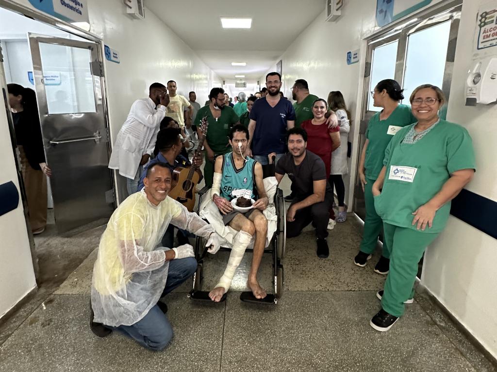 O paciente João Victor Coelho, 23 anos, ficou 49 dias internado na unidade após sofrer um acidente de trânsito voltando da cidade vizinha, em maio deste ano, e é só elogios para o atendimento que recebeu.