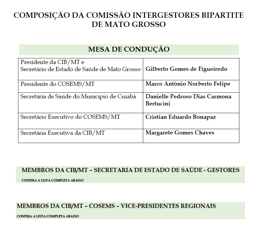 COMPOSIÇÃO DA COMISSÃO INTERGESTORES BIPARTITE - MT - MEMBROS